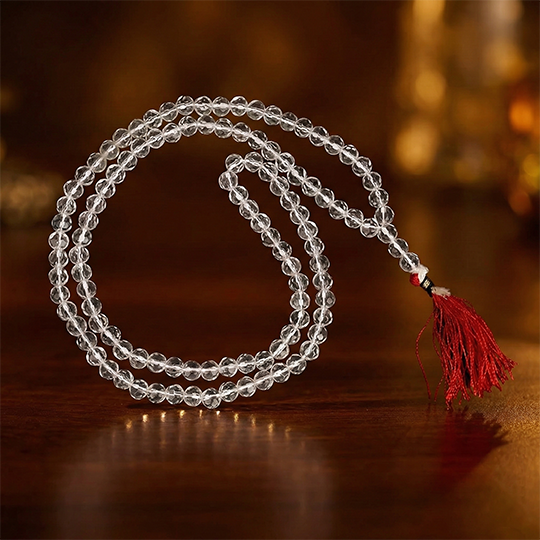 This sacred Sphatik Mala is crafted from pure crystal quartz beads, known for their calming and cleansing energy. Traditionally used for japa, meditation, and spiritual practices, it helps enhance focus, clarity, and inner peace. Ideal for daily prayers, mantra chanting, and spiritual healing.
